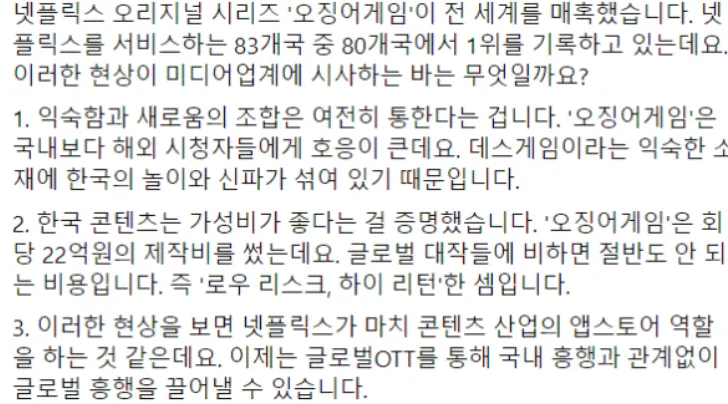 항목별 요약 예시(아웃스탠딩 뉴스레터)