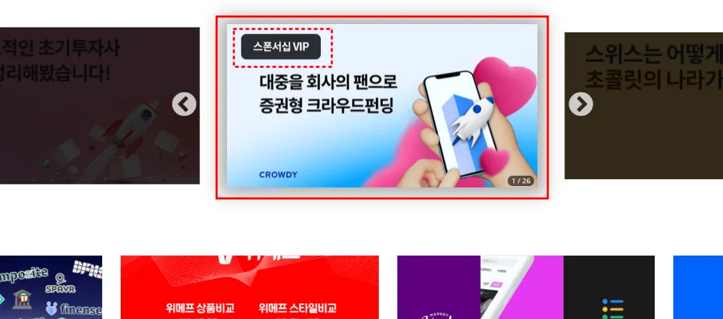 메인홈 롤링배너의 경우 좌측 상단에 ‘스폰서십 VIP’ 가 표기되니 소재를 제작하실 때 꼭 참고 부탁드립니다. (디자인 작업 시 좌측 상단은 되도록 여백으로 부탁드립니다)